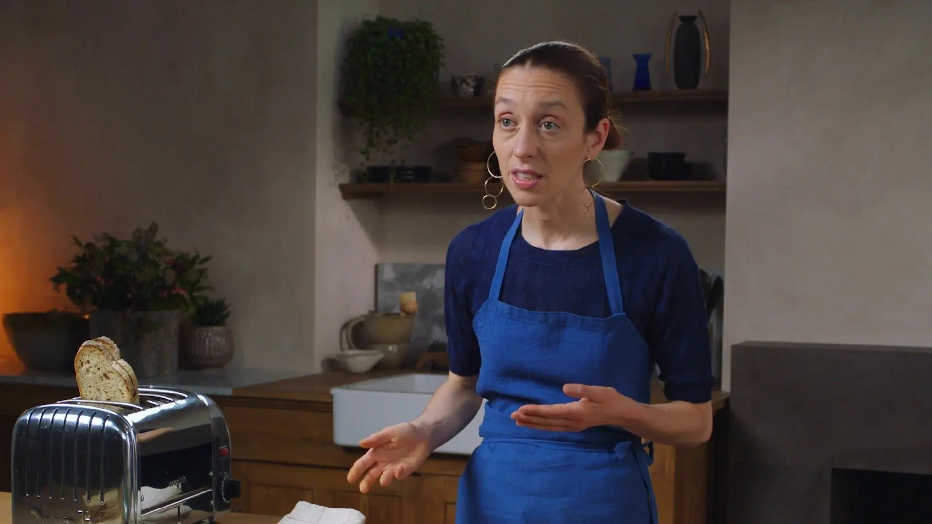 Demonstrating an all-time favorite from Poilâne’s sister café, Apollonia shares the recipe for her open-faced ham-and-cheese sandwich and her hack for perfectly toasted slices of bread.