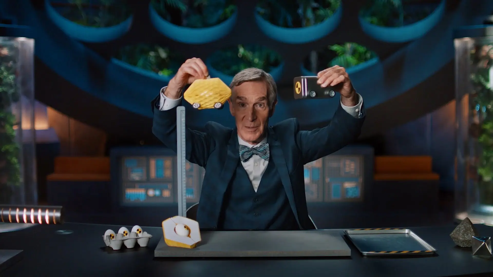- Peanuts and popcorn and celery is kind of how I got this far. And look, I'm fine. WOMAN: You are. [MUSIC PLAYING] BILL NYE: The scientific path is seldom a straight line. To achieve your goals, you're going to face challenges. But don't take these limitations the wrong way. Let's let them inspire us. Embracing constraints can spark your creativity and lead you to innovative solutions. [MUSIC PLAYING] The joy of constraints-- constraints or rules or regulations aren't bad things. They're just things you have to meet or abide by in your design or with your idea. And so furthermore, when the government has regulations about automobile safety or drug safety with the Environmental Protection Agency constraining how many miles per gallon you can get, those aren't bad things. Those are things that you have to deal with as a designer or procurer, a fabricator or a marketer. The analogy to a machine is perfect. You want a machine to have all the parts it needs but no more parts. You want all the regulations you need but no more. But you've got to have some regulations, everybody. People want to solve problems. That's what we want to do. And you'll hear the expression all the time-- let's just think outside of the box. If you think outside of the box, you'll be creative. You'll solve the problem. Well, I believe that expression is based on an old puzzle that's been around since I was a kid. It looks like this. There are nine dots arranged in a box. All right. Now, the rule, the game, is you have to connect all nine dots with just four lines. And let's just say you can't lift your pen, pencil, or stylus off of the page. So let's try it. We get started. We'll go across the top. There's three of the dots. Down the side, three of the dots. Along the bottom, three of the dots. Well, you can't get that last dot on the side and the dot in the middle with just one more line. You can't do it. Oh, heavens. We are puzzled. We are stuck. But if you try the puzzle again, going outside of the box, you can go like this. Let's go up from the bottom diagonally to the top, down here along the side. Now go outside of the box. Then come back up across, picking up those two dots. And then with just one more line, you can get the last dot. Isn't that fabulous? The thinking outside the box comes from the rule, the game, where you're only allowed to have four lines of any length. But you're only allowed to have four lines. And you can imagine a situation-- I can imagine a situation easily in computer coding where you're only allowed four lines or so many characters or so many milliseconds or microseconds of computing time. I get it. So you've got to embrace those constraints and work with them. Constraints are good. They're the rules by which you must play. Think about connecting a bridge from one side of the river to the other. You can't put the bridge just anywhere. It's got to be where the banks will su...