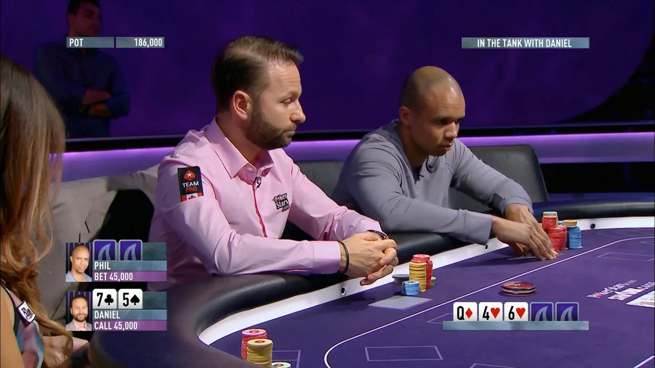 OK, so in this hand there is a lot to it. Obviously Phil Hellmuth and I go way back and have played a lot of hands against each other and I've picked up a good amount of tendencies that-- you know, and traps that he falls into. There's also going to be an opportunity here to really sort of make a live read, not only just by looking at Phil but also some of the things he says. We're going to look at how his bet size in this situation limits the range of hands that he can have. So let's take a look here at this hand from the "Big Game". ANNOUNCER: How about a reraise to 3,600? DANIEL NEGREANU: All right, let's stop it right there. So don't try this at home. This should have a viewer discretion is advised across the bottom because obviously 6-2 suited isn't a hand that should be in your three-betting range. But as I said, I do have a metagame with Phil Hellmuth that goes back many, many years, and I sensed his raise there is going to be pretty light, and I don't mind playing hands in position with him. Plus, there's the added bonus of we're on TV. We're trying to play a little more loose and have more fun and, you know, create some fun hands. So all of that went into my decision making here. As far as Phil's range, you know, he is raising under the gun. One of the things we know about Hellmuth is with some of his stronger hands like, you know, 9 10s, jacks, ace-king, ace-queen, his raise sizing is bigger. So what we can extrapolate from this is the fact that he's just made a min raise, we can eliminate some of the stronger hands from his range, you know, like the aces, kings, queens. A lot of those big hands, ace-king, he's going to make a bigger raise a lot of the time. And that's a trap you don't want to fall into. You should pick a raise size for these situations and raise your entire range the same amount. Phil here is giving away information by making a min raise with, you know, a weaker hand, which is king-10. And I knew at this time in his career that we could eliminate the strongest part of his range of hands. ANNOUNCER: Forget the loose cannon. Daniel's now trying to isolate Phil Hellmuth. ANNOUNCER: Doyle pocket jacks. ANNOUNCER: Don't think he was counting on Doyle waking up with such a big hand. - Who lost the last pot? DANIEL NEGREANU: Let's stop it right here. So obviously when I make this three bet and Doyle Brunson calls on the button, we know we're in big trouble because Doyle's range here is going to be extremely narrow. Now we can probably eliminate aces and kings from his range because he's probably going to four bet here. Frankly, he should be reraising with these jacks as well in this situation on the button. He likes to call, but now we've basically got him pigeonholed on a range that looks like some ace-king, some ace-queen suiteds-- he's going to fold ace-queen offsuit in this situation, that much we know-- and, you know, hands like 9s, 10s, or jacks. So you'd never want to be in situations w...