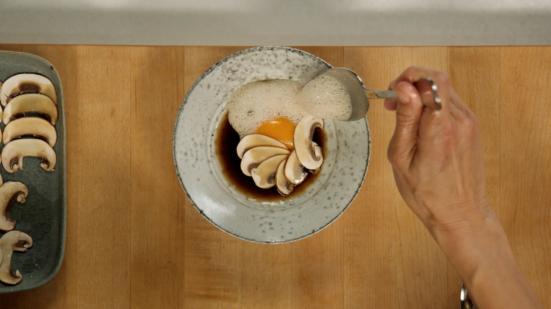 Learn how to make a mushroom stock that will serve as a base, along with vegetables, confit, and smoked egg yolks. Make mushroom foam, and slice and season mushrooms to incorporate into a beautiful dish.