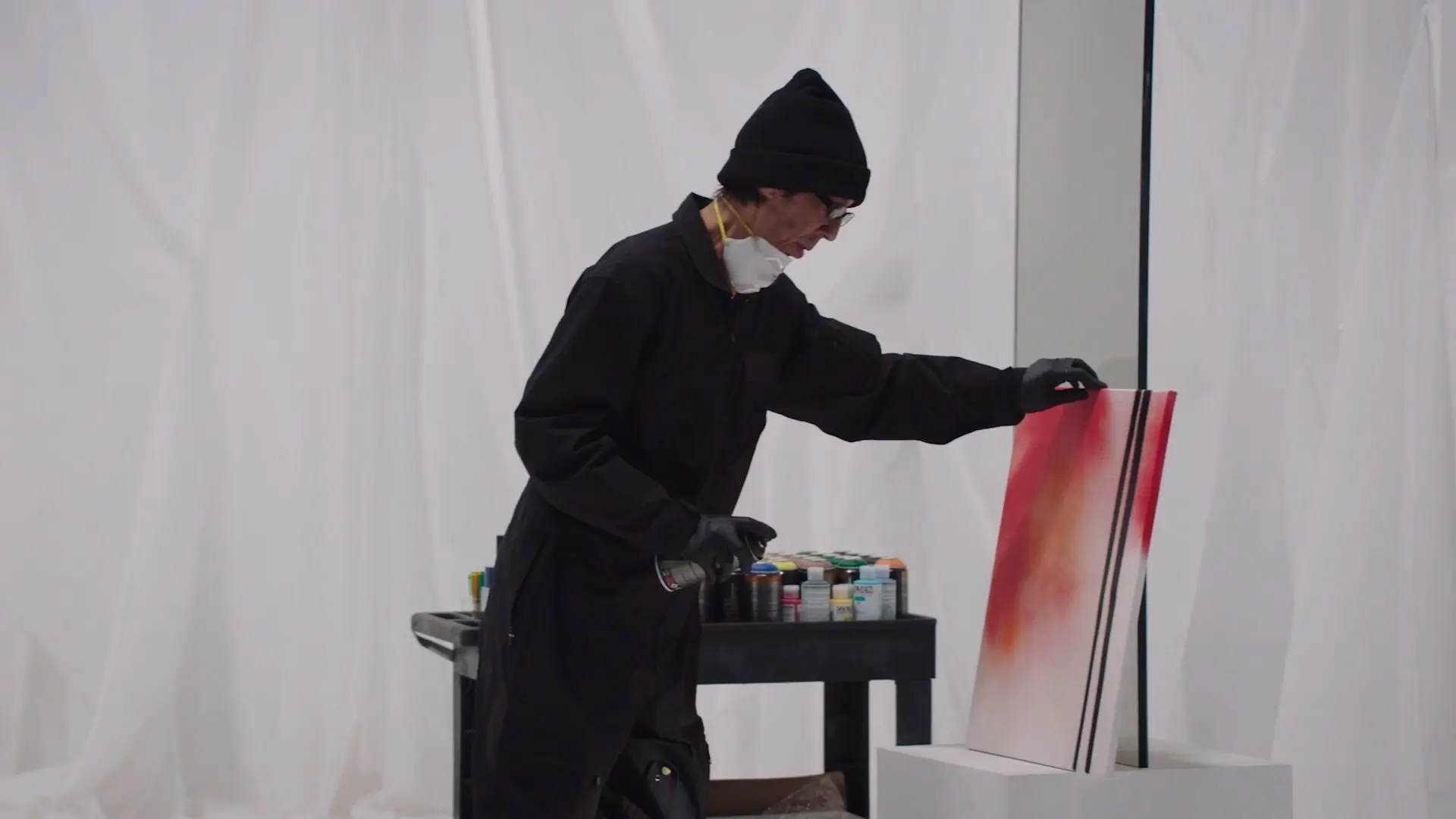INSTRUCTOR: Learning to control your spray is one of the most important skills you can learn. I'm going to show you a few can control techniques that will help build your confidence with a spray can. [MUSIC PLAYING] So I want to show you what's happening here. So you can see how wide that is. So this technique of spraying upside down-- that's essentially how I'm able to control the width of my lines and the actual line, per se, that I would like to use. So how I reduce the thickness of the line is I put the can in the inverted position, and I spray a bunch of circles. And I guess you could do straight lines. You could do a lot of different ways. But as you can see, we've gotten the thickness down from something like that to something quite thin, which is now, for me, workable. So now that the can is upside down, I'm going to keep the can upside down. Because if I invert the can now, I'm going to push the airflow back into the other position, and when I spray it, it's going to be large. I assume it's still small. I'll check. It kind of is still small, so just doing one line now, rather than this technique of just bringing in the normal vertical position. In the inverted vertical position-- okay, that's a lot better, actually. And I think my problem is-- and this is something you have to check if you're going to try to do any of this-- is that the can is actually too full for the thin line I was trying to get. Although I did get one. So let's go back to our lesser cans. Although these guys are almost dead. Oh, that's a lot better. So already, the can's telling me, yeah, Lenny. We're exactly where you want us to be, because that thin line took no effort at all. The base trick is just turn the can upside down. [MUSIC PLAYING] So what's the difference between painting on the floor-- like this, for example-- and then painting with the canvases up there? I want to get into, I guess, my circle. What's my technique. And what I'd like to explain is I'm at the extension of my own capability. Think of the human form in that circle. And for me, I see this shape here, this kind of semicircle shape, as a very natural-- it's quite natural for my arm to go in this position. And as a result-- okay. What's happening is I'm just letting my arm go in that 360 motion. Making a smaller circle is a lot easier. Once again, whenever you see me turn the can upside down like that and depress, it's me going through the motions of my technique of diminishing that paint line from that fat one, now, to what I think is a thin one. Let's see. Okay. So everything happened here on this circle that I almost didn't want to have happen, but that's fine, because what you see is the initial circle I made. And then I started to dot it. But then what happened was the can's too full. It kind of didn't cooperate, and the lines got a lot bigger. But that's fine. Once again, it's just a demonstration and showing yo...