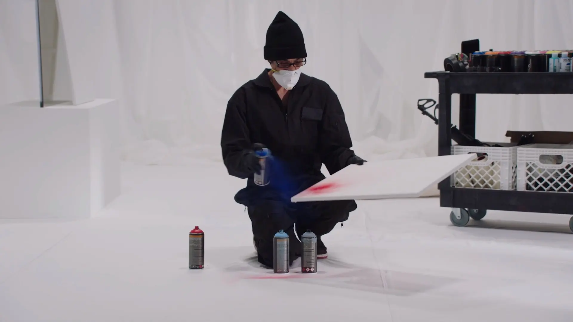 [MUSIC PLAYING] MAN: We're going to be talking about spray paint and why it is the main tool of graffiti writers and street artists. It's lightweight, easy to conceal, and the fast growing nature of the medium made it possible for us to continue to move on quickly and to do other work. - So, before we get started spraying anything, I would recommend you wear gloves. Sometime, I wear gloves, but I take off the right glove, because I'm right handed. And I feel sometimes this-- even this slight little bit of tension here, it's restrictive. So, it's up to you to decide how you would best approach it. But, nothing wrong with gloves. And obviously, because we're spray painting, I would recommend wearing a mask. We've got this guy here, but I happen to also like-- very much the N95 style. So, let's get this guy on. MAN: I would also recommend not just wearing a mask, but in addition, wherever your work environment is, trying to set up something with adequate ventilation, i.e., of course, a fan. And some levels of ventilation, you know, open windows, something like that. And anyone who is working with you in your environment should also be masked up. - Shake your paint. Shaking paint is like, probably the most important thing. MAN: The spray can is a pressurized container with a mixture of paint and propellant. Shaking the paint will mix the paint and the propellants so that your spray is a fine and even mist of color. - Love the sound of that marble can. I guess if you looked at the instructions, everything is on the can as well. Read the fine print. It's going to tell you to shake it for about a minute. I think once you hear the marbles moving around in there, you're good. I wanted to show you something I created. It's a bit DIY on my part. This is your basic thing I've done, and basically modified a skill saw. There's my blade, which I've attached. What looks to be like a water bottle cage from a bicycle, we actually 3D printed this cage ourselves. But, any type of contraption to get it to connect to this is possible. Now, mind you, we did this with a skill saw. I've seen people using drills, anything to just get the thing in motion. This tends to be quite effective just as a quick fix to shaking the can. Because, to be quite honest with you, shaking the can after a minute or more is a bit tedious. So. - I would say that can is sufficiently shaken. Not stirred. MAN: So, it's important to know the fullness levels of your spray cans. I tend to work with cans that have differing amounts of paint and propellant, so that I can vary the effects that I'm able to achieve with each can. - We're going to be using four cans as my example. And, we've got a full can. Let's call that 100%. We've got a can at three quarters filled, let's call that 75. We've got a can that's half empty, that's your 50. And then we just about have an empty can. So, each one of these cans is going to be quite helpful as ...