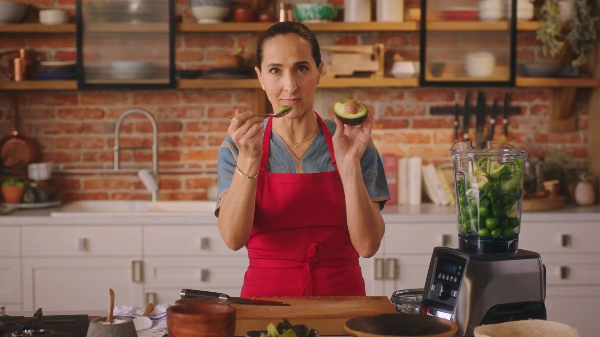 [MUSIC PLAYING] GABRIELA CAMARA: Salsas are fundamental for Mexicans. Salsas, I would say, are a signature stamp of cooks, of families, of places. Usually when you go to people's homes, they have a sauce that is their home sauce. They have a sauce that their grandmother made or that their aunt made or that has been in the family for generations somehow. And I feel the same thing about restaurants. Restaurants have their sauces. And you go to a restaurant or to a taco stand because they have a particular sauce that's very telling of a certain way of cooking or of a certain tradition, a certain family, or a certain locality. [MUSIC PLAYING] So I'm going to tell you how to make Salsa Verde Cruda, and this is one of my favorites. It's one of my staples at the restaurant and I love it. You don't cook anything in the salsa, everything is raw. And this is why it's called Salsa Verde Cruda. Cruda means raw, and this is exactly what it is. So we start with tomatillos. I prefer small tomatillos because the flavor is more concentrated and they're not bitter. And I have some tomatillos here that I want to show you with the skin. This is how they grow. So they grow in the plant, this is the little stem here. And they usually are covered in the skin. If you find them like this, covered, you just clean them. And you do not need to rinse them before you use them. So now what we're going to do is just finish peeling these. And we are going to prepare this very simple sauce by just putting everything in the blender. So here we go. The tomatillos have a very sticky sort of gel. It's a light resin that comes from that tomatillo. It's just enough that it that it gets your fingers dirty. So I will open the blender, put the tomatillos in here. And I put them whole, again because they're of a very small size. The second ingredient that we're going to use is this onion. And I'm going to again, chop it roughly just so that it goes into the blender and disintegrates easily. And we're going to put all these clean cilantro leaves. So again, we're going to do onion, tomatillos, cilantro, Serrano chiles. I'm going to destem them and just cut them in half so that they blend easy. Then, garlic, and I'm just to take the part that might not blend easy, cut it in half. And the secret of the sauce is to put lettuce. And I like to use Little Gems or cogollos in Spanish. And it's a very crunchy variety of lettuce. You can use Romaine. Sometimes when you're making salad and you leave the center of the lettuce, this is how I started making this sauce. I use the center of the lettuce to put into a green sauce just to give it a little bit of freshness and crispiness. And now I use Little Gems just because they're delicious and easy to find and it's a good way of using up everything and not wasting. So here we have a beautiful avocado. I'm going to use only half of it. And usually I don't need to make sure that it's beautifully peeled, but wh...