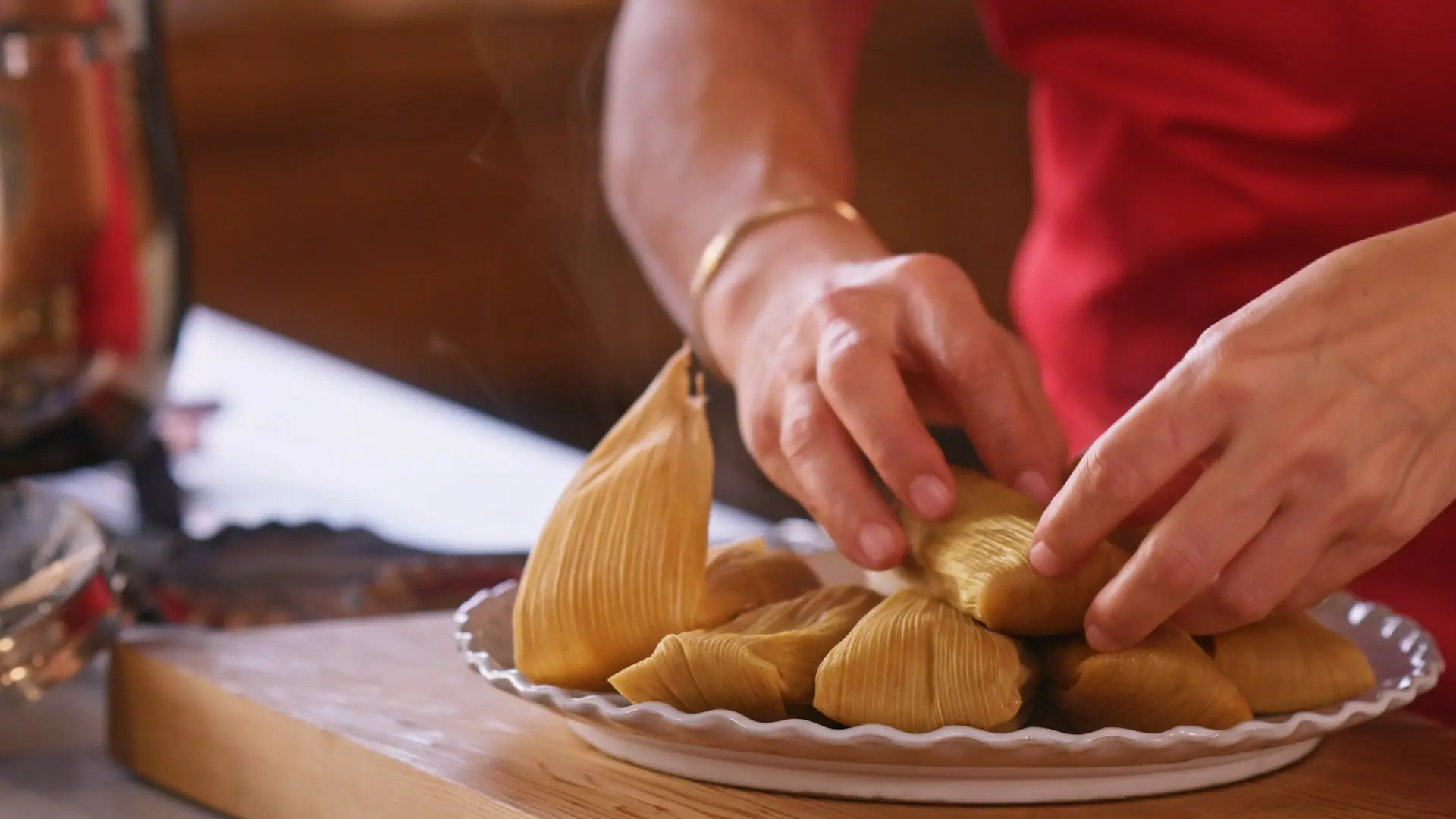 Topics include: Guava Compote · Preparing the Dough · Building the Tamales · Steaming the Tamales · Serving the Tamales