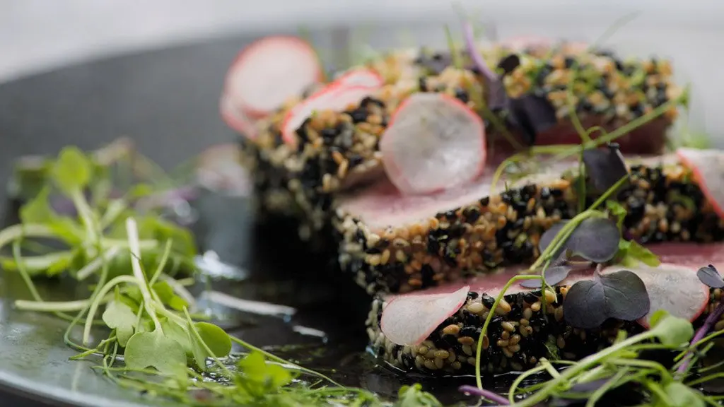 Gordon says to “treat tuna like you would an amazing wagyu steak.” Learn how to cook such a delicate meat, quick-pickled vegetables, and make cucumber “noodles” finished with a bright, yuzu dressing.