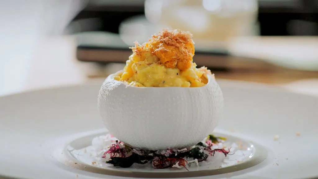 Even in a restaurant kitchen, cooking eggs is one of the most difficult tasks. Learn how to make the perfect scrambled eggs and elevate them by adding sea urchin and white truffle.