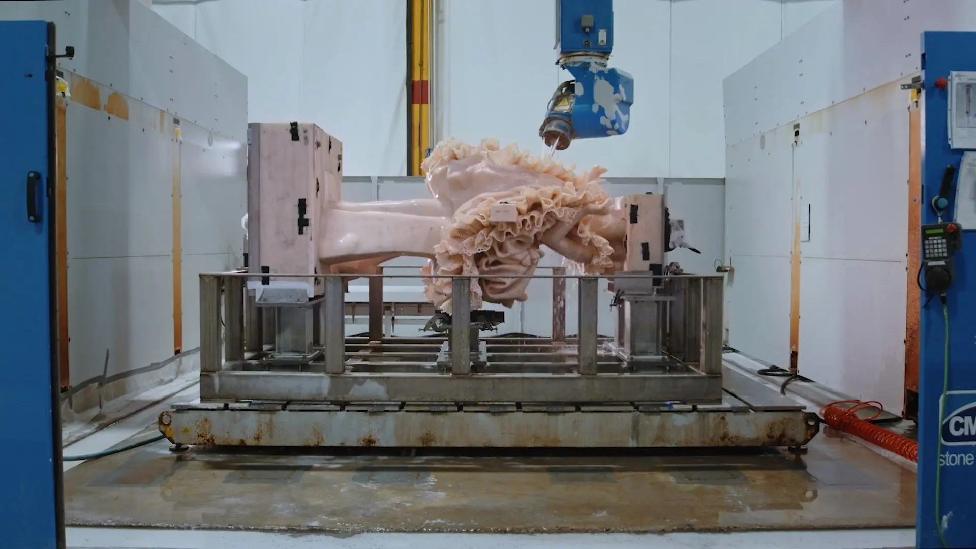 [MUSIC PLAYING] MAN: Welcome to Antiquity Stone. This is where I've created some of my most technically advanced stone sculptures. I'm going to show you how I turned an idea from a small object into something monumental with a work called "Pink Ballerina." I've been working on this piece for, I guess, eight years now. And it will be really one of the most elaborately carved pieces that's ever been created. It comes from a small porcelain from Dresden, Germany, only about 5 inches tall, of a ballerina. And this ballerina is holding up her tutu. And her leg goes out. And it reminds me almost of Aphrodite celebrating the rites of spring. And so the pink ballerina is presenting itself as Aphrodite, celebrating her femininity, and also, celebrating mythology, and the ideas, the idea of believing in fertility, the idea in preserving what it means to be human, the idea of keeping what's important to us. Aphrodite's not just about the past. It's about the future. It's trying to find desire. It's trying to find hope. It's trying to find optimism to face the future. "Pink Ballerina" is using a lot of modern technology in its creation, starting with scanning this small porcelain. And the reason for scanning it is to be able to get all of the information. We've used a CAT scan, so we know how to make it really from the inside out. But it also gives me the freedom to make it any size that I want and to be able to maintain all the relationships and the details. So this is a model. This is a 3D-printed model of lace. And what I really wanted to capture was this sense of fabric, and of texture, and of the tensions that are within this fabric. If I would make this by hand-- and I never would have used technologies to make a CAT scan of the piece-- and to be able to get all these details of how this original lace on this ballerina would have had these holes created through the tension of that fabric, in a traditional method, the artisan, a sculptor would have come and would have drilled these holes. And they would be circular holes. And maybe they would give a little bit of an ovalur quality. But they would never have been able to capture all the tension and the realism within this fabric. [MUSIC PLAYING] "Pink Ballerina" is part of my antiquity series. And it's trying to have a dialogue with some of the great Baroque sculptors such as Bernini, or Queirolo. There's a chapel in Naples, Italy called Chapel San Severo. And San Severo has some of the most amazing sculptures that were ever created that deal with fabric. And there's an image in there of Christ lying down with a sheet over his body, crown of thorns. You can see the face and all the body features through the sheet. There's a woman standing with a cloth over her head. And you always learn in sculpting that if you're going to define a form, that if you have folds, something would go up and come down, up and down. You would never just dig deep into something. But here, on the ...