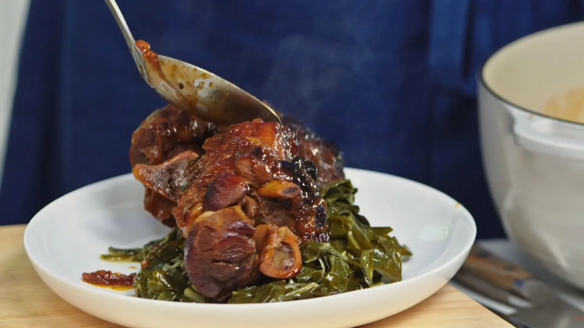 Mashama details the importance of hogs to the Southern communal experience and how cooking techniques developed to use every part of the animal. She shows you how to brine and braise pork shanks and how to smoke and sauté collard greens.