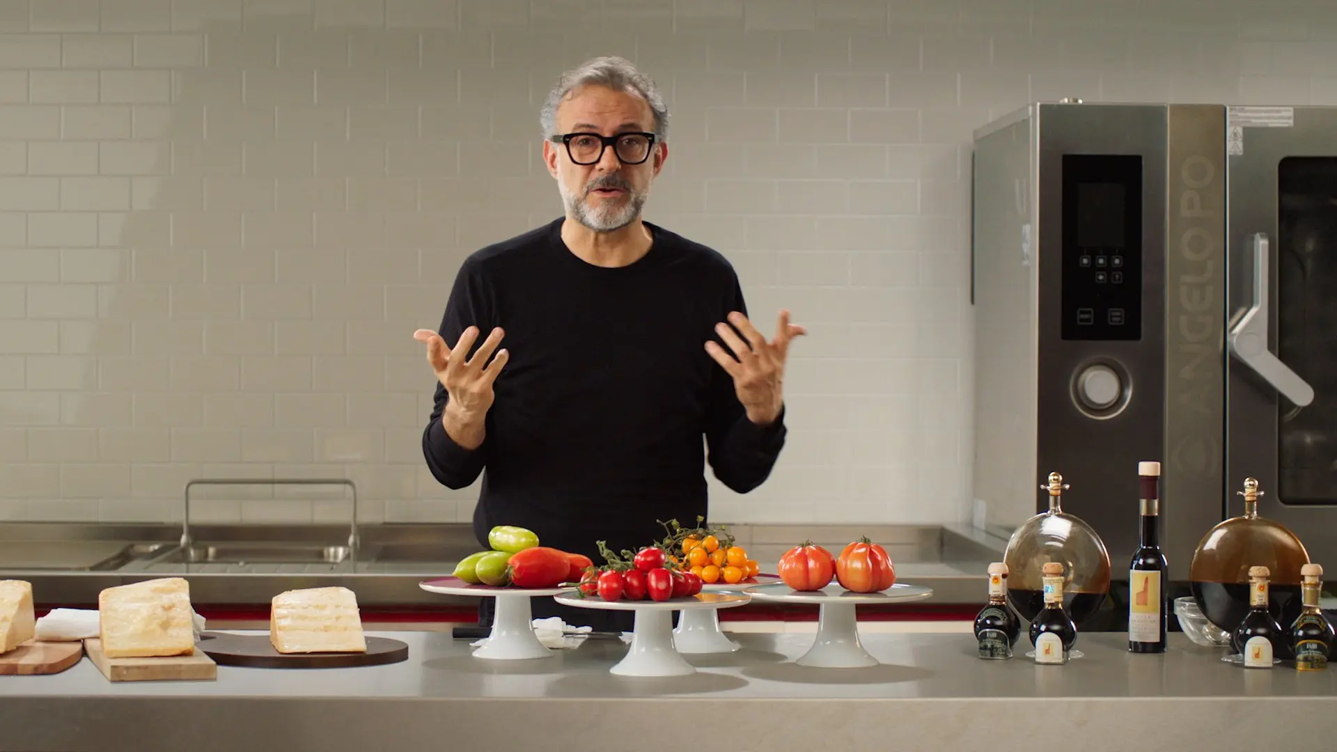 To help you develop your palate, Massimo walks through the tasting of three ingredients that are fundamental to his version of Italian cuisine: tomatoes, Parmigiano-Reggiano, and balsamic vinegar.