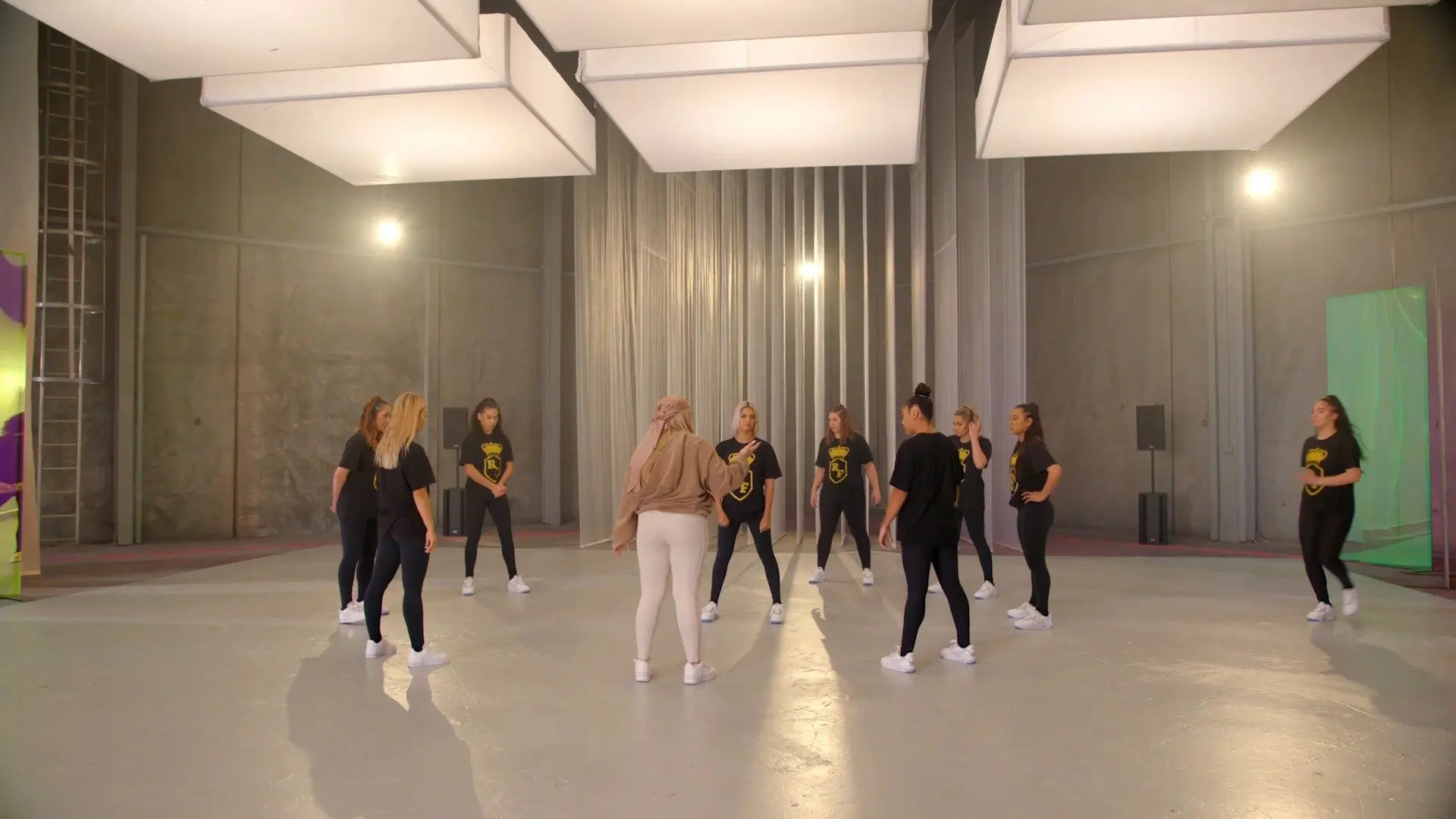 [00:00:00.00] [ELECTRONIC MUSIC PLAYING] [00:00:06.23] [MUSIC PLAYING] [00:00:08.15] PARRIS GOEBEL: When choreographing a group of dancers, you can arrange them into a series of formations to create dimension and order. A formation is basically the shape your dancers move within. You can bring to life interesting and powerful pictures by exploring the use of formations in a creative way. [00:00:28.94] When it comes to formation in your choreography, again, it's about doing what feels right for you as a creative and a choreographer. For me, I'm really obsessed with symmetry and shapes. And you'll see that in my work. [00:00:42.56] [MUSIC PLAYING] [00:00:46.72] OK, guys, we're just going to do, like, basic formations, not dance. So let's start with the just the girls V. [00:00:56.90] - Cool. [00:00:57.46] - Yeah. Well, we're going to add more girls, too, so it's a bigger V, so the varsity girls. Cool. [00:01:03.77] PARRIS GOEBEL (VOICEOVER): In my process, I like to just play the music. And I just kind of close my eyes, or I'll daydream. And I just visualize, and just challenge myself, and see what comes to mind. If I can see something, if I can see a formation-- [00:01:19.27] - Are you coming out, Taddie? [00:01:20.49] - Yes. [00:01:20.86] - Yeah. [00:01:21.59] PARRIS GOEBEL (VOICEOVER): --then I'll create it. But there are times where I feel it feels stuck, and I'm like, I'm not sure what to do. I have the movement. I don't know where to put my dancers. But I just kind of have a vocabulary for myself of just basic formations that get me out of that stuck space of, like, what's next. [00:01:40.88] So it might be a V. It might be a straight line. It could be a diagonal line. It could be a clump or a cluster. Whatever feels right for that movement, just start with that. And then you can build on that. [00:01:51.77] [MUSIC PLAYING] [00:01:59.58] - So I'll head it, diagnix girls. So you girls just wait on the sides, and then you guys that are just come-- come down. Cool. Teisha, replace Maya for me, just for your height. [00:02:13.84] PARRIS GOEBEL (VOICEOVER): And whether it is a V or a straight line, I just have my go-tos that feel good to me and kind of get me out of that space of what I do here, because we all feel that. [00:02:28.43] PARRIS GOEBEL: Just from Izzy onwards, just cheat and go out a touch. Renee, you were good, actually. Cool. [00:02:36.66] PARRIS GOEBEL (VOICEOVER): And I always find it will change. There'll be so many versions. But if you can just start and get yourself out of that space of, like, what's the right thing to do, then go for it-- [00:02:46.98] - Cool. And then Chris and Jan center. Create a circle, girls, around her. [00:02:52.12] PARRIS GOEBEL (VOICEOVER): But if you can visualize it, you know, you might end up seeing something straightaway and then you can be like, I got it. [00:02:58.96] - Keep moving around, girls. So you're going to go opposite. 2, 2, 2, 2, 2. Cool. [00:03:07.36]...