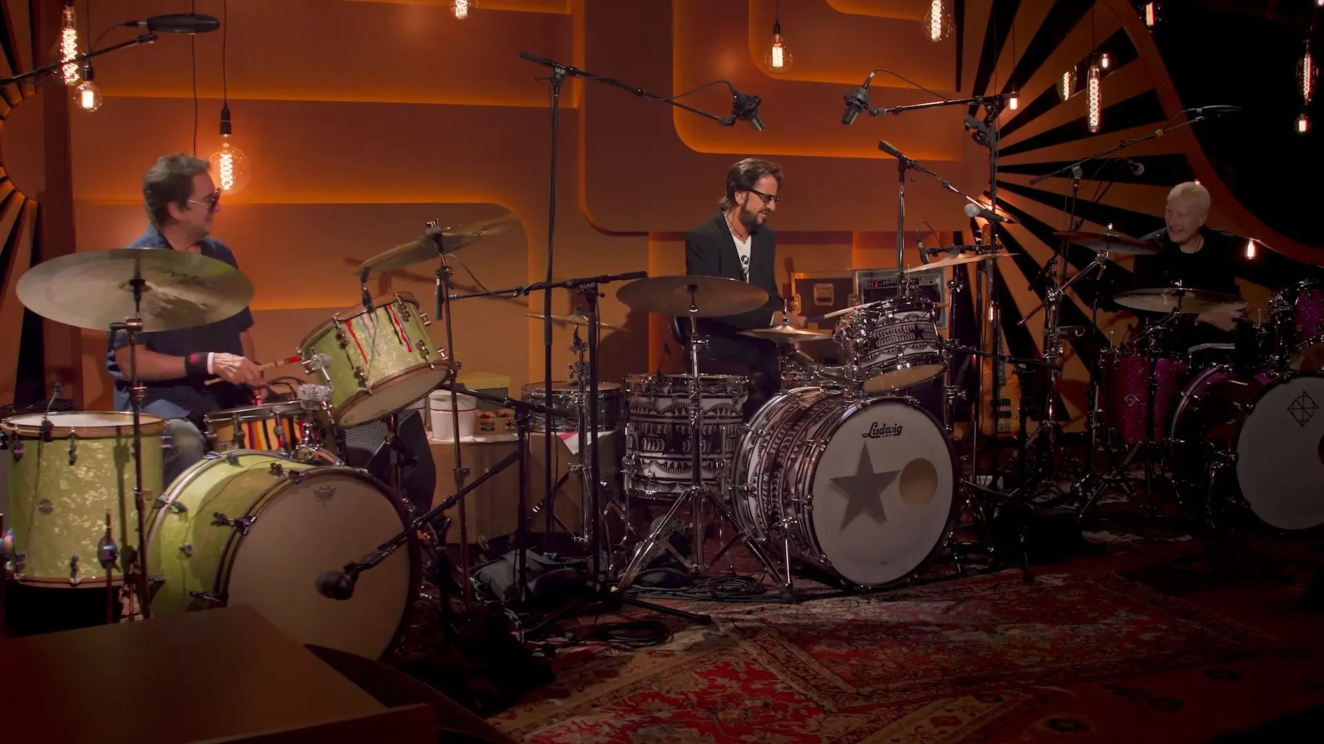 Legendary drummers Jim Keltner and Gregg Bissonette join Ringo and share how Ringo’s early career influenced theirs. The three demonstrate their different styles, showcasing different paths open to members pursuing the profession.