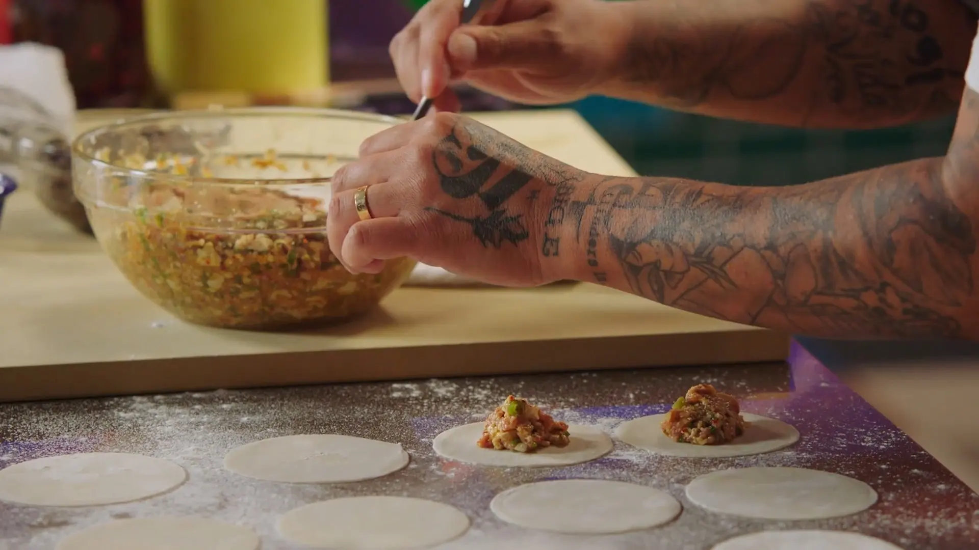 Learn Roy’s techniques for filling, folding, and cooking beef-pork dumplings and vegetarian dumplings.