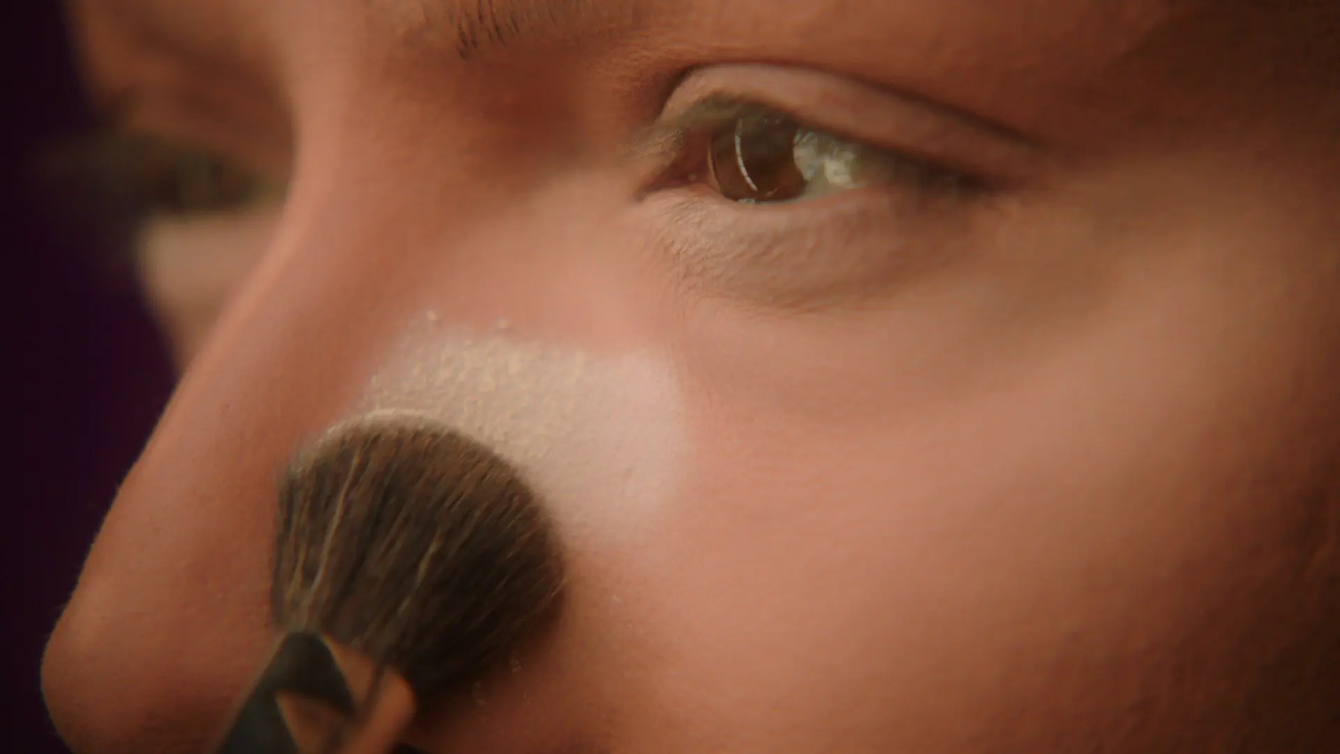 Raven builds her nose by contouring various planes of the face. She demonstrates how to properly contour, color, and highlight to create optical illusions.