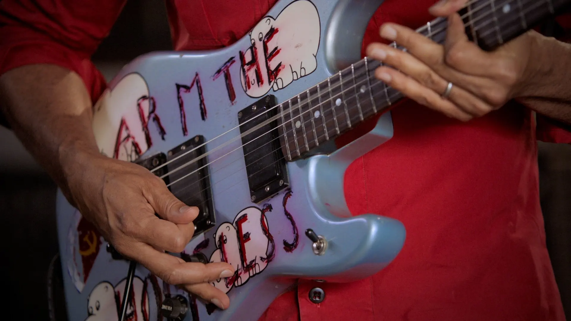 One of the ways that I've organized the different guitar noises that I've come up with through the years is by keeping a noise chart-- something very similar to what you see here-- and always had that at rehearsal, always had that at home. So when I came up with a new noise, I would write down what guitar I played it with, what the amp settings were. Because I, unfortunately, through years have lost a lot of-- I've got tapes filled with spectacular guitar noises that I could never play a second time, because I didn't write down how I came up with them. So the noise chart was born. And I am now going to refer to it as I take you on a journey through Tom Morello's Noise Chart. [MUSIC PLAYING] Swirling Echo Triplets. So with that, I have a long delay set at a lengthy setting, and then it's just a matter of playing triplets on one or more strings. [PLAYING GUITAR] So the pedal settings for the swirling echo triplets are a delay pedal set to a longer delay, which helps the triplets echo into the night. [PLAYING GUITAR] Swirl on. [MUSIC PLAYING] The next candidate on the noise chart is the bullet-in-the-head, Toggle Wah-Wah solo business. And for that, the wah-wah is employed. The toggle switch is toggled. And the solo is actually double tracked. So there's one guitar on one side playing the low version-- [PLAYING GUITAR] --and one on the upper E string playing the high version. [PLAYING GUITAR] And then we get into the-- [PLAYING GUITAR] And it's a simple solo using a wah pedal, a toggle switch. But it felt very original to me and like it was my own. Really, that's where I began to find my own voice as a soloist-- combining the weird stuff with traditional guitar playing, the noise chart leading the way. [MUSIC PLAYING] Next up on the noise chart are the traditional Scottish highland bagpipes which are used in the song "Voice of the Voiceless" on the "Battle of Los Angeles" record. One of the reasons why I like this ancient digitech whammy pedal is because you choose the settings with your hand. And so I thought, if I spin between those settings while fingering a note, the root note-- the G string I'm going to be playing-- is like the drone of a bagpipe, while the harmonic intervals are played by the pedal. It's a very unpredictable little number on the noise chart, and we'll see what we got today. [PLAYING GUITAR] Bagpipes. [MUSIC PLAYING] The next number on the noise chart is what I call the Cello Delay-- the approximation of a symphonic cello, or whale sounds on the guitar, by setting the guitar to a longer delay, striking the note with the volume knob turned to zero, and then bringing the volume up while using vibrato on the note-- creates something that sounds something like a cello. [PLAYING GUITAR] You can feel the mystery. [MUSIC PLAYING] So the next noise chart number is the Octave Delay, which is the setting that I used for the solo on Aud...