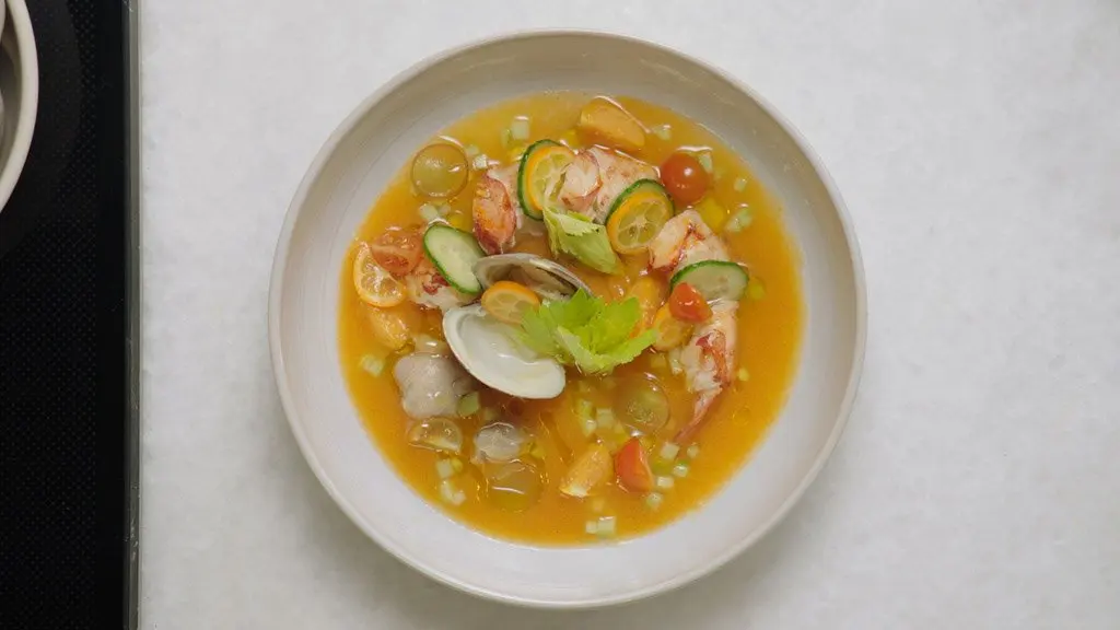 Learn to combine vibrant color and flavor in Wolfgang's seafood gazpacho. From selecting fresh clams to making a special clam mirepoix, you will discover Wolfgang's unique method for mastering your plating technique.