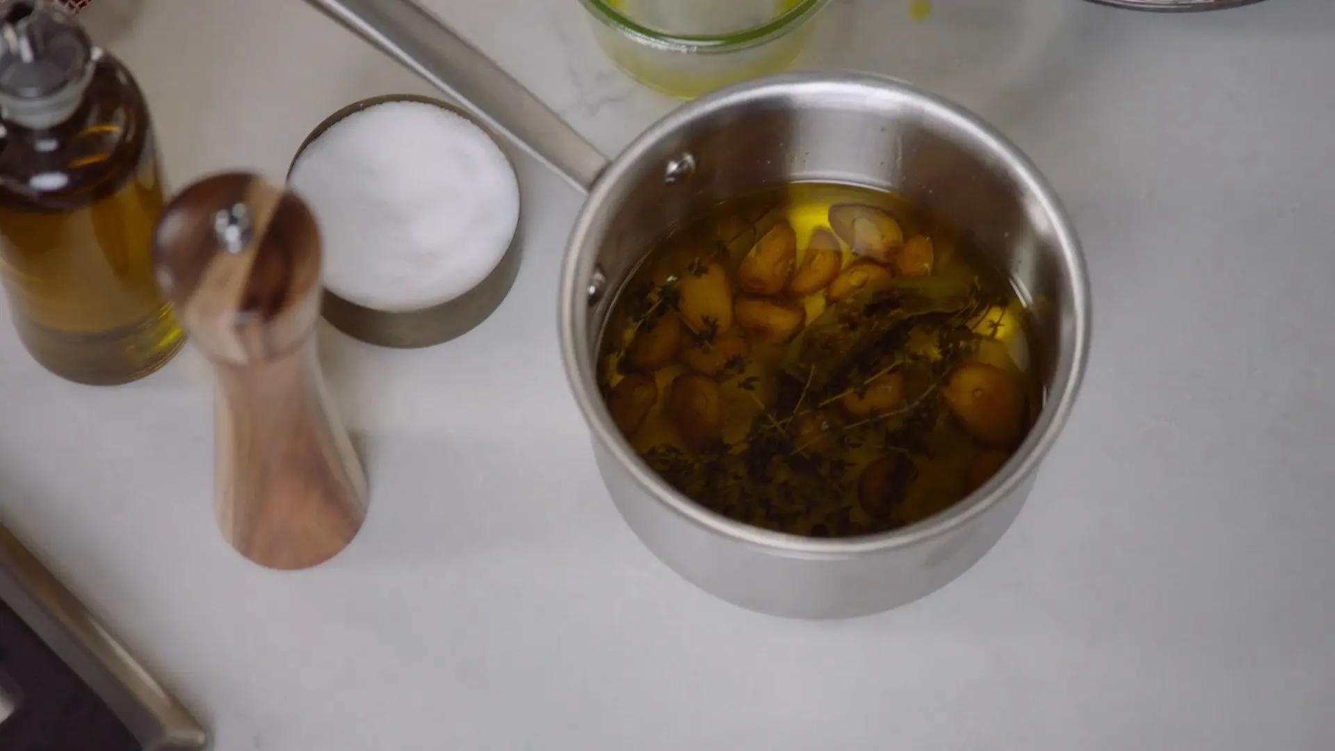 Learn how to make a confit garlic oil that’s perfect for drizzling.