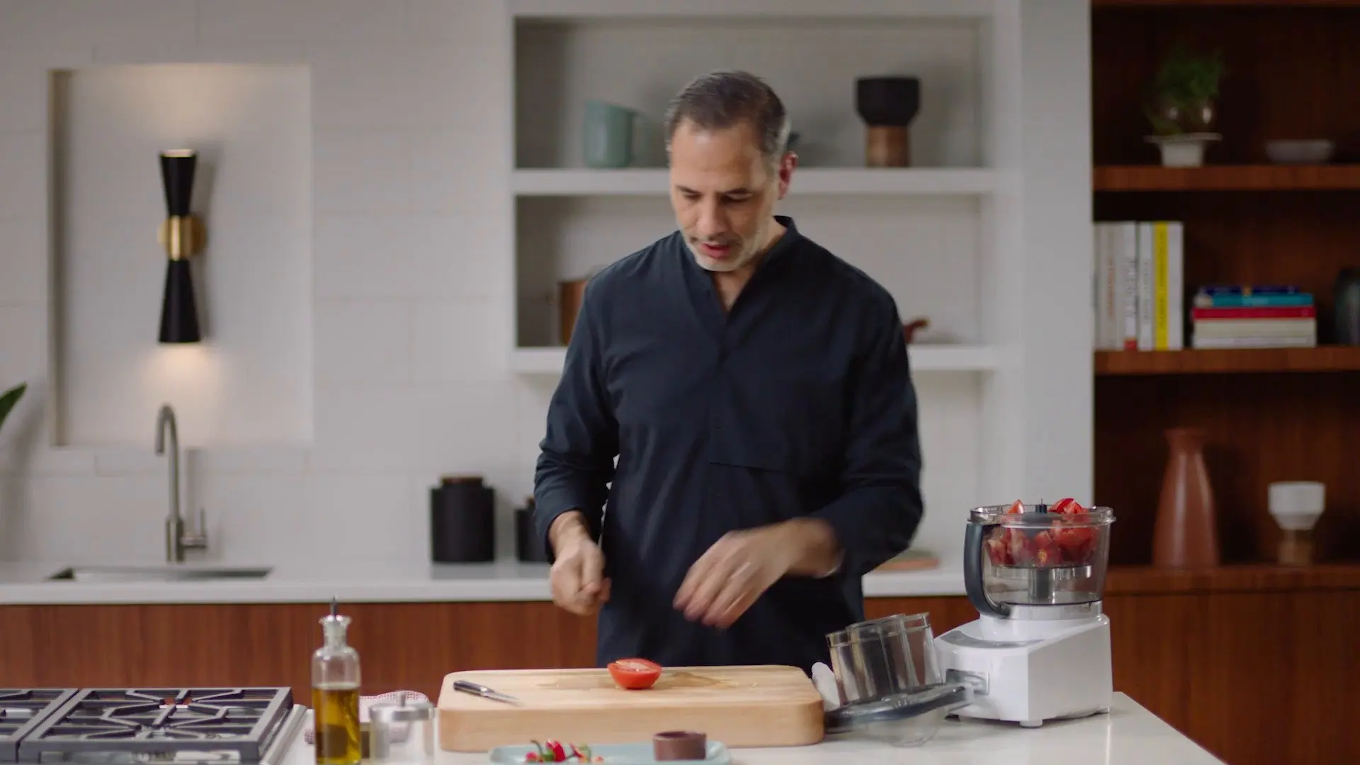 [00:00:00.00] [MUSIC PLAYING] [00:00:06.12] - Shatta is a chili dressing or chili sauce that is common throughout the Middle East, especially in Palestinian cooking, Lebanese, Jordanian, Syrian. And essentially what it is, is chilies with salt that are allowed to ferment a bit and turn a bit sour and beautiful. And what is really important is, is that you get that acidity. But I'm going to cheat a little bit and add acidity through the addition of cider vinegar. So I won't let my chilies ferment naturally, which is what often happens. Sometimes people put them in the sun and leave them there for two, three days and then make the mixture with the salt. [00:00:43.66] I'm just going to add a little bit of vinegar. So it's a quick shatta. It still has acidity, it still has a lot of flavor, but it's just a bit quicker to make. And with a food processor, it's also very, very quick, because traditionally, this might have been done with a pestle and mortar or by hand. But here I'm going to take all my chilies and just throw them in a food processor. And I always have a jar of this at home in the kitchen. I bring it out like four times a day. [00:01:18.60] And it's a wonderful thing to have, because it goes into soups, it goes into stews, it goes on your scrambled eggs, it can go over anything that needs a little bit of heat. Because it's not, because of the tomatoes, I'm just adding tomatoes now, the shatta is not like an intense as chili sauce. It's not like harissa. It's not unrelentlessly chili. It's a bit milder. It's a little bit more palatable, so you can really add it in all sorts of situations. [00:01:51.81] And what I want to emphasize, is that you can always make these chili sauces your own. If you like them a little bit milder, get milder chilies. You can scrape out the seeds, which means you lose some of that heat as well. So you don't need to follow it to the tee. Just cook it to the way that you like. So tomatoes roughly chopped, chilies roughly chopped. You don't need to worry too much about that. And then a bit of salt. And it's very important for the shatta to have texture. So I'm keeping it textural. I want to have a nice bumpy, gritty texture to my shatta. So I'm adding salt. And then just shutting it and giving it a couple of pulses. [00:02:43.12] [PULSING FOOD PROCESSOR] [00:02:48.95] That's about right. Yeah, you can look, it looks quite coarse inside. You can really see this. It's going to go a little bit more process than that, a little bit more pulverized, but that's how we start. Now I add a little bit of cider vinegar. And about 4 tablespoons of olive oil. Had I added this earlier, all this liquid would have start to form up and create something which is a little bit more homogenized and aerated, so I add it now at the end and I pulse a few times just to mix it. [00:03:31.99] [PULSING FOOD PROCESSOR] [00:03:36.86] And that's the texture you're after. It's really bitty, really lovely, because you really see what's in the...