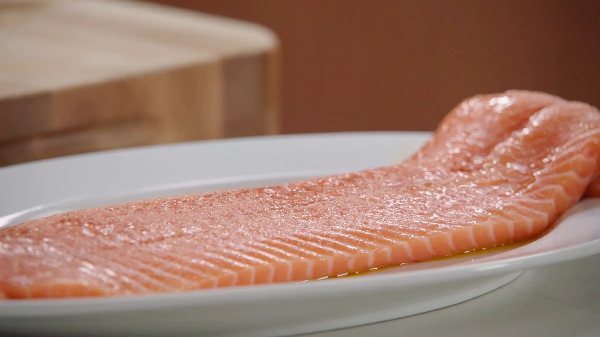 [00:00:00.00] [MUSIC PLAYING] [00:00:01.71] YOTAM OTTOLENGHI (VOICEOVER): This is salmon, which is a very popular fish. And I've decided to give it a real special treatment and serve it in a big beautiful platter straight from the oven to the table. I would call it a celebration fish. It just looks spectacular. [00:00:27.57] The salmon is gonna be served in a chili and tomato sauce, which is inspired by Jewish North African sauces, especially from Libya and Tunisia where the fish is cooked in a-- in a spicy tomato and chili sauce. Obviously, they wouldn't use salmon there. And shrimps are not gonna be there. [00:00:45.96] But the flavors of the sauce itself, having tomato, chili, garlic, and caraway, are deeply North African. And I love those things, because I think the-- this-- the fish could really stand against those big flavors. And it's a great way to-- to serve a fish, in those colorful, red, lovely colors. [00:01:05.31] So I'm gonna start with some oil in my pan. And it's about roughly four tablespoons. And I'm just gonna start by slicing some garlic and some chili and giving them a bit of color. [00:01:24.09] And the lovely thing about this dish is, often, people think about fish dishes as being kind of quite precious. You want to cook it perfectly and serve it when you're ready and all the rest. And that is true of many fish dishes. But this one is all about the immediacy of having your-- your sauce cooked already and the fish just poaching the sauce. So it's more difficult to overcook it. [00:01:51.81] Think about it as a bit of a fish stew. That's how I like to think about it, because it really is something that that does-- of course, you don't want to overcook your fish. But it sits in a-- in a-- in a wet environment. So it's quite nice to have it as a reassurance. You know, it's-- it's more difficult to-- to overcook. So I'm gonna add this garlic and some red chili, also thinly sliced. [00:02:21.73] What I love about this sauce is the combination of fresh and dried chili. So I've got some fresh red chili going in. And in a minute, I'm gonna add a little bit of this dried ancho chili. And that ancho chili will add depth, will add some sweetness. And the fresh chili is all about the intensity of a fresh chili that is kind of unmitigated. It's like proper chili, fresh. That goes in there. [00:02:59.63] This is a pretty-- pretty hot sauce. If you don't want it to be too hot, you can scrape the seeds out, which always helps-- helps with reducing the heat. It's up to you, really. And you can also reduce the amount of chili that goes in. So I'm gonna cook these chilies and garlic, just to really soften and until they go translucent. And I'm roughly chopping my ancho. [00:03:29.42] As you do that, you can get rid of some of the seeds, but you don't get to get rid of all the seeds. It's absolutely fine. If you can't find ancho chilies, use other dried chilies. But don't use very hot chilies, something pretty mild and with a bit of de...